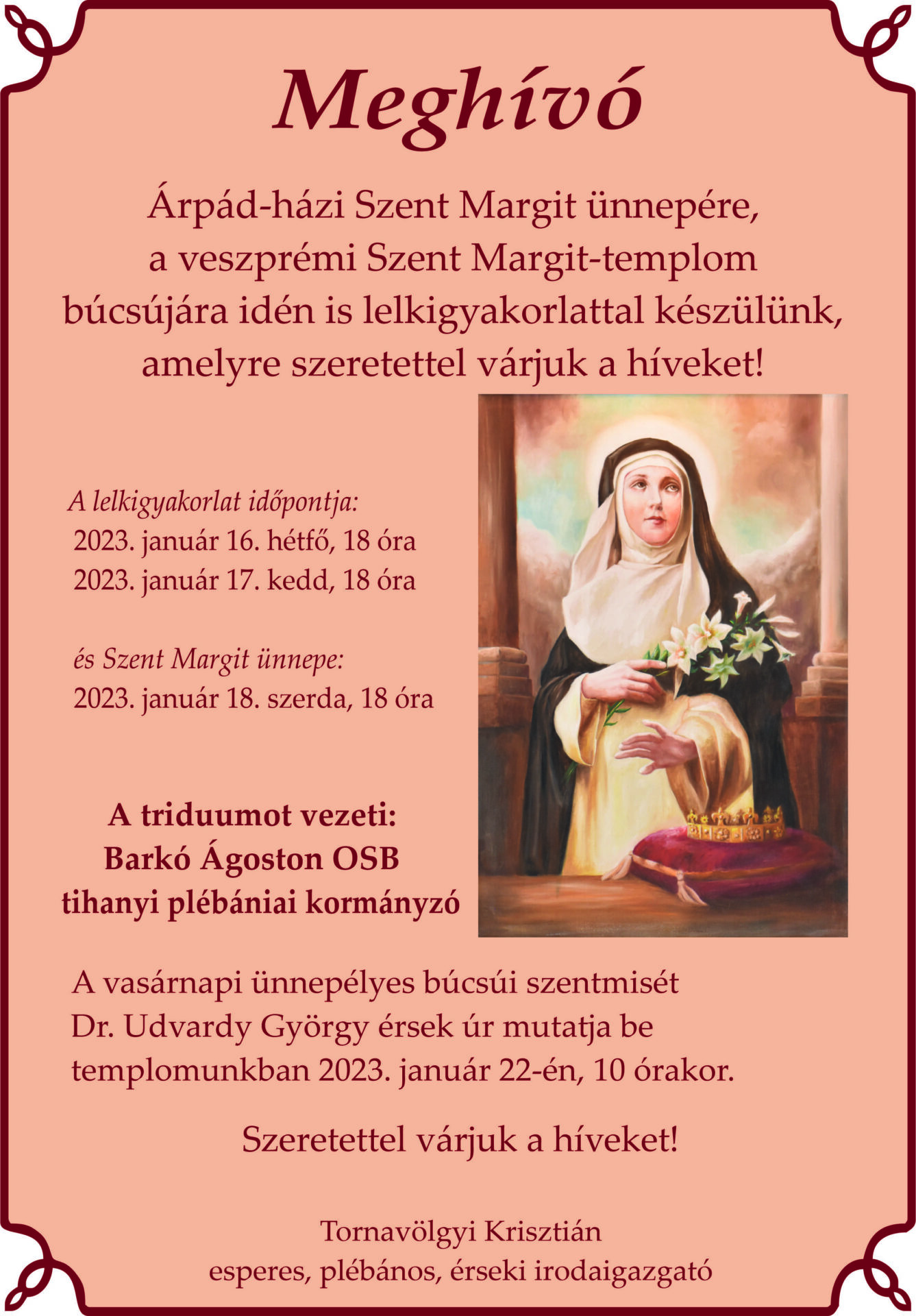 Meghívó Árpád-házi Szent Margit ünnepére